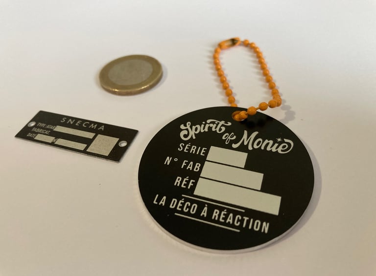 Vous trouverez sur ce site bon nombre de projets et d'objets différents. Toutes nos créations sont signées et numérotées par une plaque de renaissance. Réalisées par sérigraphie, elles reprennent les codes des plaques aéronautiques apposés sur les pièces de structures d'avions de chasse et de réacteurs (avions Marcel DASSAULT, réacteurs de la SNECMA dont je suis très FAN).
